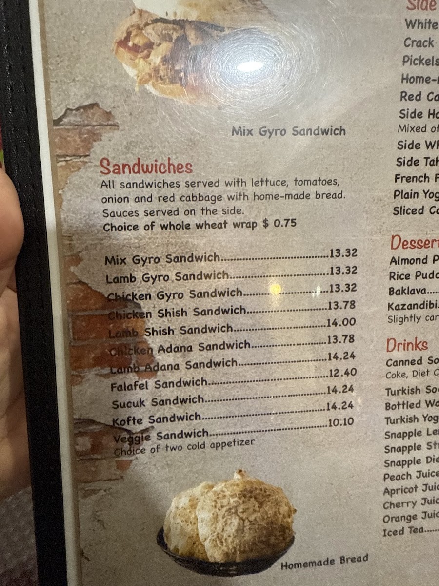 Save room for dessert, as Turco offers delectable options like the Baklava, a rich pastry layered with sweet pistachios, or the creamy Kazandibi for a taste of Turkish custard. Each dessert is priced modestly under $7, allowing you to indulge without guilt.